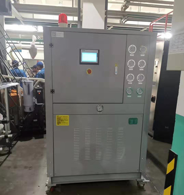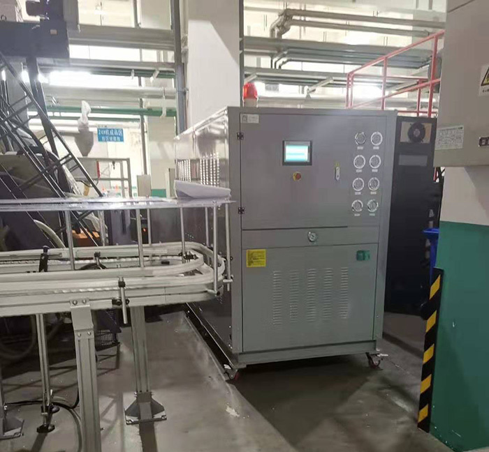- 壓縮空氣干燥:吹瓶需用清潔、干燥的壓縮空氣,利用工業(yè)冷水機(jī)提供的冷凍水作冷源可除去壓縮空氣中的水分;